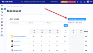 Te osoby, mogą dodać czas za pracownika z poziomu , poprzez: