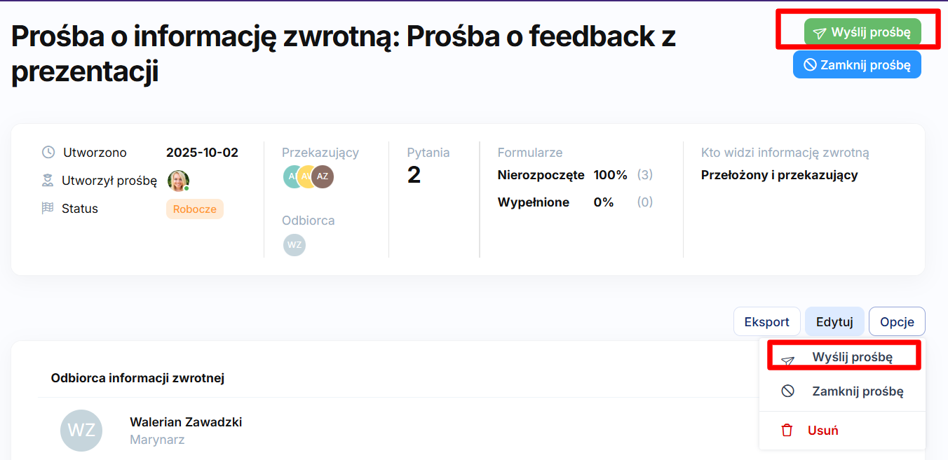 - osoby zaproszone do udzielenia informacji zwrotnej otrzymają powiadomienia mailowe.