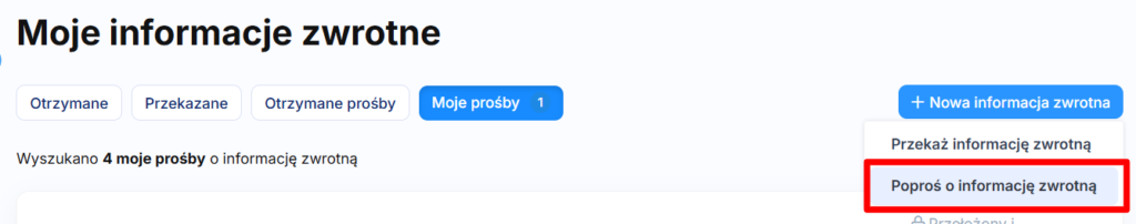 Moduł Informacje Zwrotne pozwala pracownikom prosić o opinie / informację zwrotną: