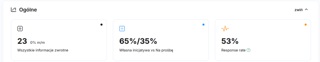 • współczynnik odpowiedzi (procent próśb o informację zwrotną na które udzielono odpowiedzi).