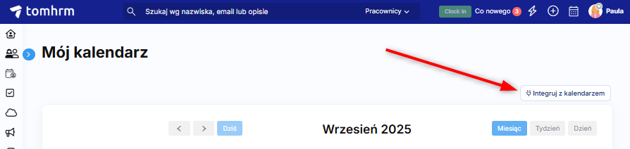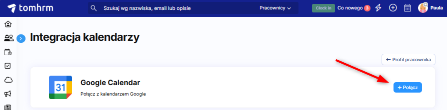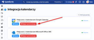Każdy użytkownik może połączyć swoje konto tomHRM z kalendarzem/ami Google.
